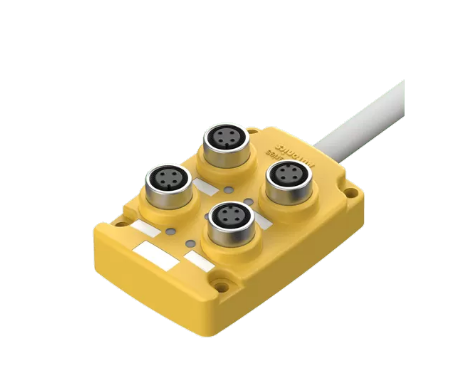 传感器中继盒(M12 4针连接器类型) PT系列4针M12连接器传感器中继盒为在各种应用中安装多个传感器提供了灵活性。配有4个,6个和8个端口的中继盒可以为使用M12连接器的传感器供电并接收信号。PT系列可以简化复杂的布线,简化维护工作。使用电源和运行指示灯(红色,绿色LED)可以轻松检查运行状态。