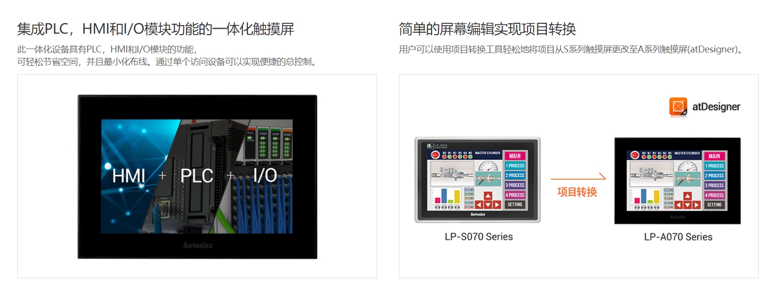 7英寸彩色LCD逻辑触摸屏 LP-A070系列逻辑触摸屏是一款集成PLC,HMI和I/O模块功能的一体化设备,配备16个输入和16个输出 触点。7英寸宽屏TFT LCD显示屏提供出色的可视性和数据管理功能。 电阻式触摸屏(模拟触摸)允许灵活地安排标签,数据记录器功能允许从各种控制设备进行数据存储和备份。 本产品可以水平或垂直安装,还支持各种连接接口,包括USB主机/设备,以太网等。