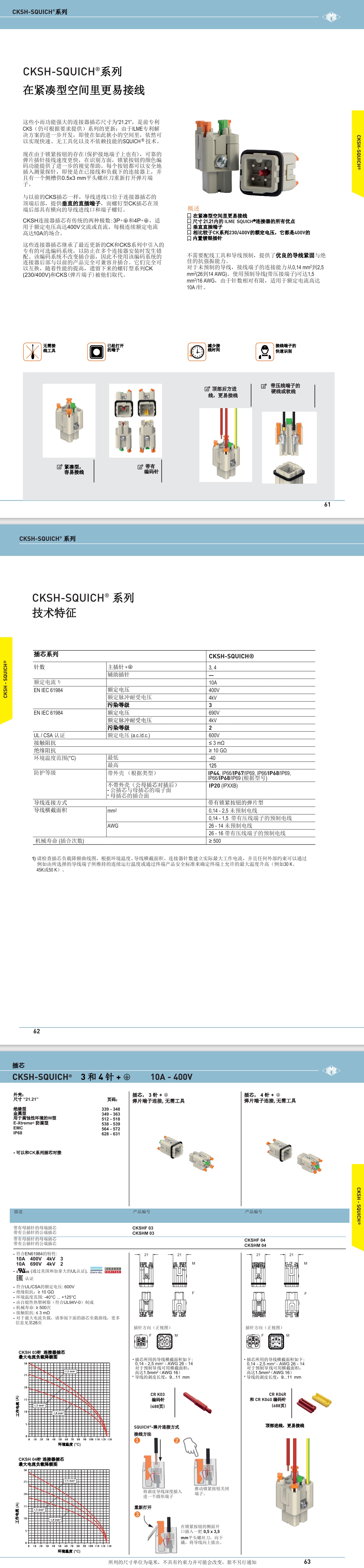 CKSH-SQUICH®系列在紧凑型空间里更易接线 这些小而功能强大的连接器插芯尺寸为“21.21”,是前专利CKS(仍可根据要求提供)系列的更新:由于ILME专利解决方案的进一步开发,即使在如此狭小的空间里,依然可以实现快速、无工具化以及不依赖技能的SQUICH@技术。