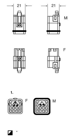 female insert, CQ series, crimp connection, 12 poles + PE, 10 A 400 V 6 kV 3, size "21.21"